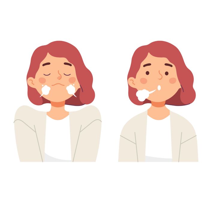 - Bây giờ, tập trung vào mặt và đầu – môi, má, mí mắt, mũi, trán và da đầu. Nhẹ nhàng nhăn mũi, mím môi, nhắm chặt mắt, và nhíu mày. Giữ yên trong giây lát và rồi thư giãn khi thở ra. Chú ý đến sự khác biệt giữa cảm giác căng thẳng và thư giãn. Tiếp tục làm các động tác này trong vòng vài phút.